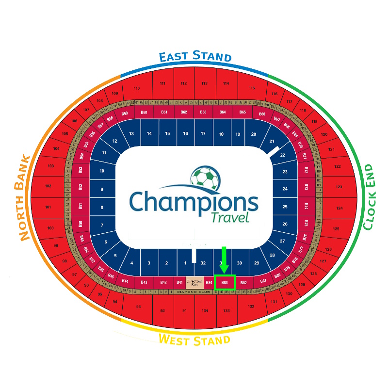- Club Level Block 83 - Club Level Access 2hrs pre/HT & 1hr post - Official Match Programme - Half time Beer/Wine/Soft drink (1 per person)